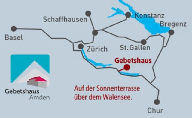 Das Gebetshaus Amden mit 34 Betten liegt in der Schweiz auf einer Sonnenterrasse über dem Walensee auf ca. 1000 m Höhe. Wir bieten einfache, schöne Zimmer und servieren kreativ angerichtete, gutbürgerliche Speisen. Wir leben eine herzliche Willkommenskultur und schaffen eine Atmosphäre der liebevollen Wertschätzung. Unsere Gäste verlassen für ein paar Tage den Alltag und suchen bei uns in der Stille die Gegenwart Gottes oder sie besuchen eines unserer Seminare.